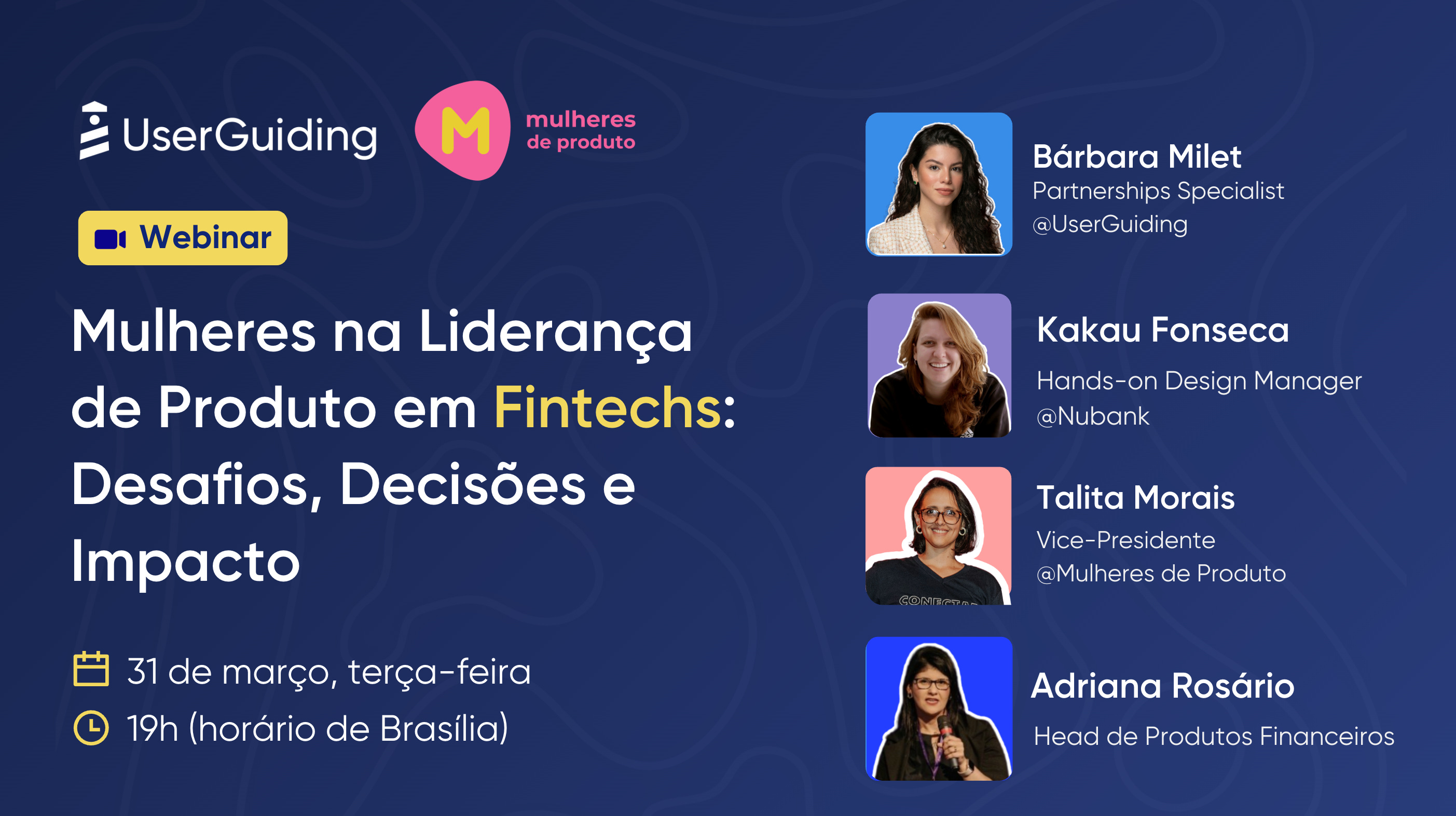 No dia 31 de março às 19h, vou participar de um painel, a convite da UserGuiding, sobre Mulheres na Liderança de Produto em Fintechs. ✨